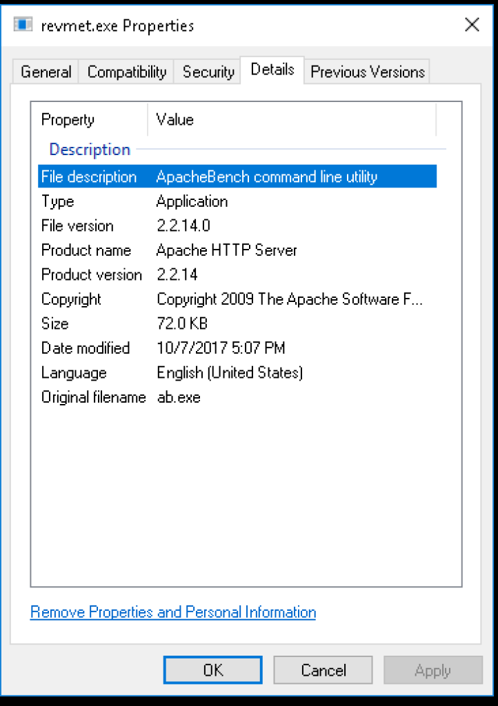 As you can see, the file looks and feels like it could belong there. Storing this in a location such as c:ProgramData... with a modified time stamp, could buy a Red Team operator a bit of time and support long(er) term persistence.