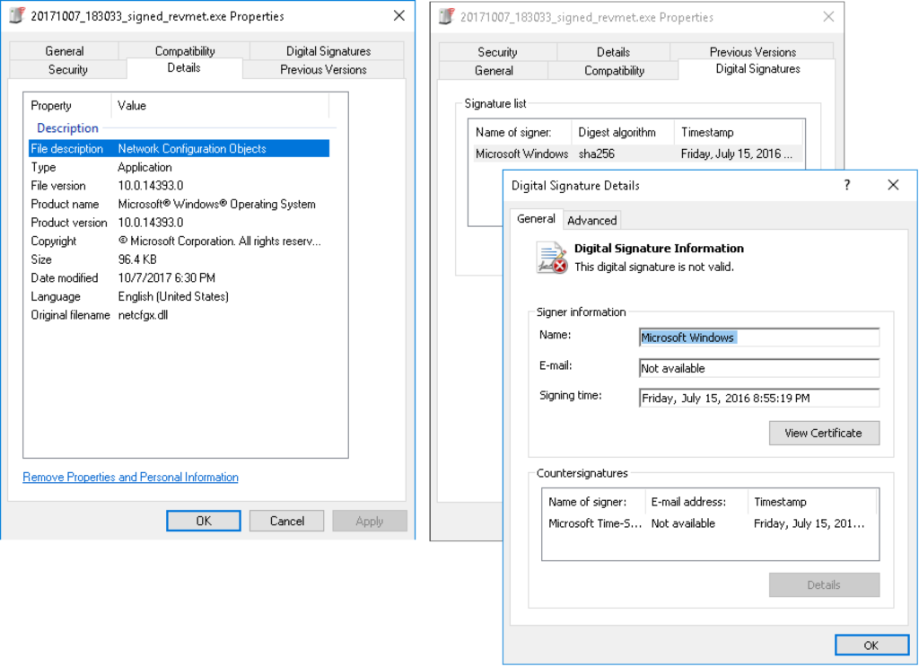 Metadata and Digital Signature added to Reverse TCP Meterpreter Binary