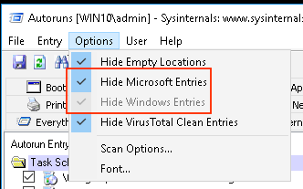 AutoRuns Default Settings Hide the "Microsoft" scheduled task