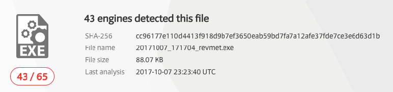 As expected, VirusTotal reported several hits
