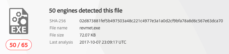 Often simple modifications can cause defensive tools to react in different ways. Of course AV is often not a show stopping defensive tool, but we were curious as to how AV handled a default Metasploit meterpreter binary when modified with MetaTwin. No obfuscation other than the addition of metadata and digital signatures. The results were interesting…
