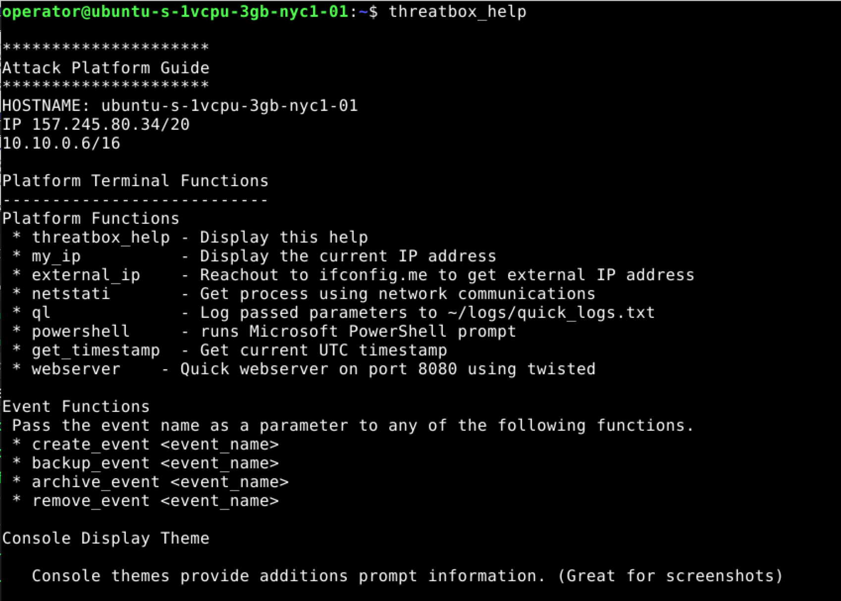 Threatbox installed using the default setup is not a complete managed solution but is a great starting point to build and create a controlled attack platform.